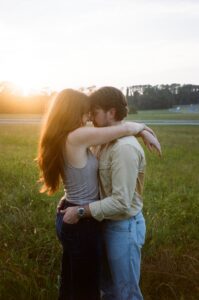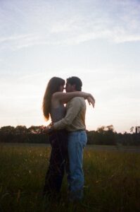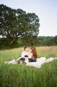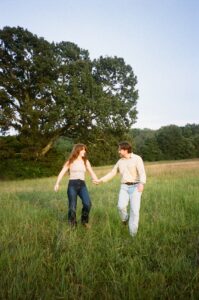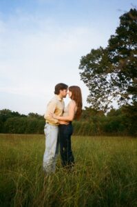 Macy is one of my best friends and she wanted to do a film-only session to capture this sweet time in her life with her boyfriend, Johnny. I was driving by Wynn drive in Huntsville one day and spotted this gorgeous field with a big tree majestically standing tall in the middle of the field. I took a mental note that I wanted to photograph there sometime, so when Macy brought up the idea to do a session with Johnny, I mentioned this spot and it was perfect.